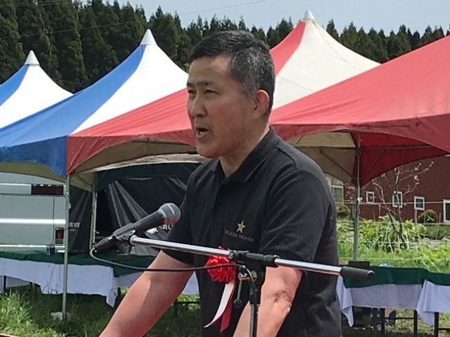 全国からこのようにたくさんの皆さまに集まっていただき、 本当にありがとうございます。 この土地は123年前トラピスト修道院によって開墾がスタートした土地です。 当初は石ころだらけだったこの地を手作業で開墾し、 耕すことも含め、 5年後にようやく酪農を始めたそうです。 できたばかりのシベリア鉄道でオランダから5頭の乳牛を買い、 道南地区の酪農もここからスタートしたわけです。 そのようにトラピスト修道院様が大切に丁寧に手入れをされてきた牧草地を、 これから私共が使わせていただき、 ブドウを植樹していきます。 大切に育ててよいワインを造っていきたいと思っています。 ブドウの品種は、 メルロー、 シラー、 シャルドネ、 ソーヴィニヨンブランを予定しており、 徐々に植樹のエリアを増やしていきます。 最終的には、 私共の日本ワインのフラッグシップである「グランポレール」に換算しますと約1万ケースにあたる量を見込んでいます。 これは現在のグランポレールの製造量の約30%増にあたります。 良いワインを造って、 この土地の魅力とともにわたしたちの活動を世界に発信していきたいと思っています。 グランポレール北海道北斗ヴィンヤードの開所にあたっては、 トラピスト修道院様に格別のご協力をいただき、 北斗市様には多大なる支援を頂戴いたしました。 地域の方々には精一杯恩返しをしたいと考えておりますので、 引き続きの応援をよろしくお願いいたします。 【グランポレールについて】 当社はワイン事業を「ビールに次ぐ『第2の柱』」と位置づけ、 2019年は「もっと近くに!」をテーマに活動しています。 「グランポレール」は、 当社ワイン事業における日本ワインのフラッグシップブランドで、 世界に誇れるプレステージなワインとして2003年に発売し、 「北海道」「長野」「山梨」「岡山」の4つの産地のぶどうの個性をいかした「土地・自然・人」が奏でる絶妙なハーモニーとベストバランスを最大の特長としています。 その品質の高さは、 国内外問わず評価されており、 多くの賞を受賞しています。 【畑の概要】 「グランポレール北海道北斗ヴィンヤード」は、 25.4haに及ぶ広大な土地を有しており、 高品質なぶどうの栽培を可能にする降雨量や土壌など、 高級ワイン用ぶどうの栽培に最適な諸条件を備えています。 2018年6月に開園し、 本年4月から第一期の植樹を開始しました。 安曇野池田ヴィンヤード(12.6ha)、 長野古里ぶどう園(3ha)に続く3番目の自社畑となります。 住所:北海道北斗市三ツ石 面積:約25.4ha 植栽計画: 2019年 4月 第一期苗木植付け 2020年 4月 第二期苗木植付け 2021年 10月 第一期分収穫・初仕込み 2022年ファーストヴィンテージの発売(予定) 栽培品種:メルロー、 シャルドネ、 ソーヴィニヨンブラン、 シラー等